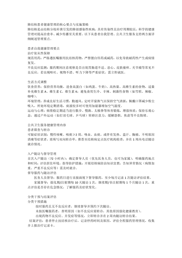 肺结核患者健康管理要点与策略