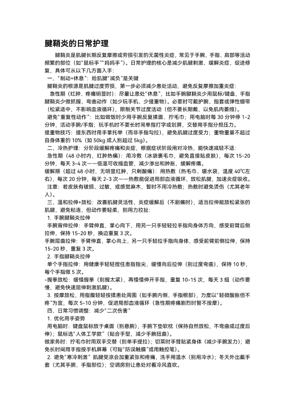 腱鞘炎的日常护理