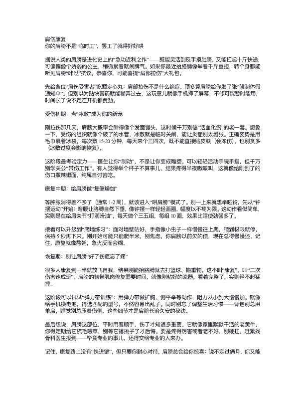肩部损伤注意事项
