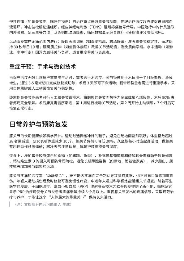 膝关节疼痛的全方位治疗与预防
