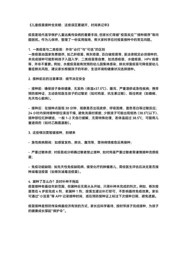 《儿童疫苗接种全攻略:这些误区要避开,时间表记牢》