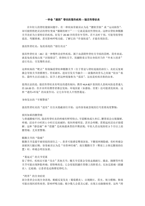 一种会“凝固”脊柱的隐形疾病———强直性脊柱炎