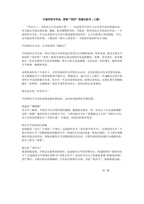 手部骨性关节炎:悄悄“变形”的指尖信号上