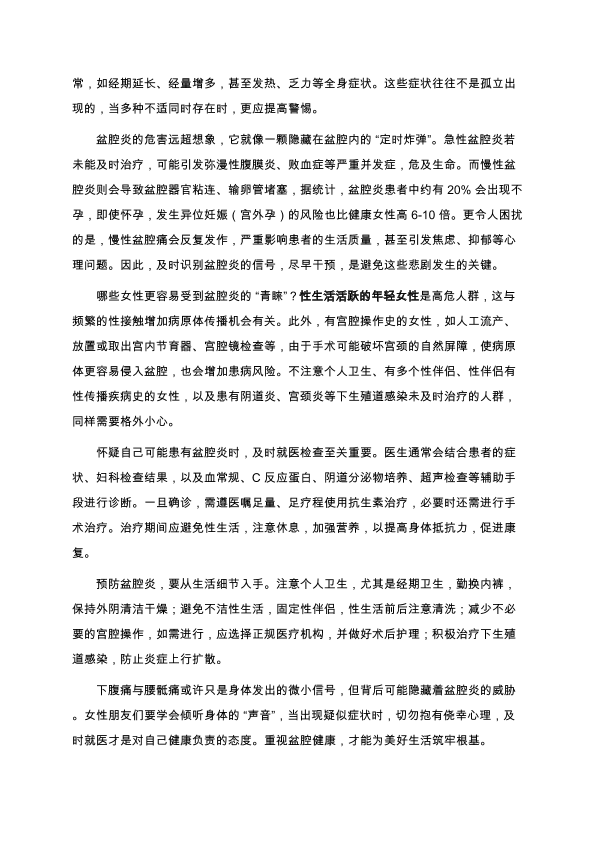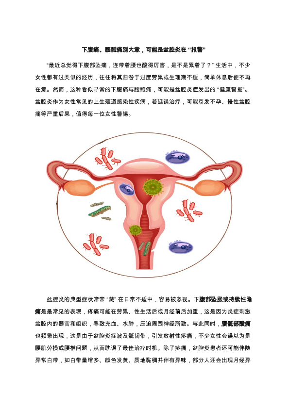 下腹痛、腰骶痛别大意,可能是盆腔炎在“报警”