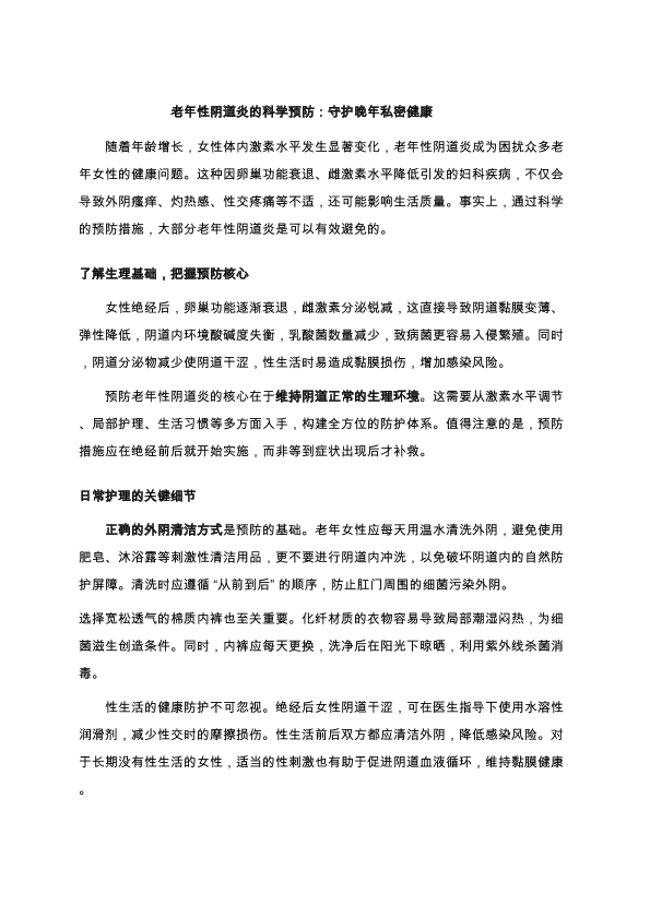 老年性阴道炎的科学预防:守护晚年私密健康