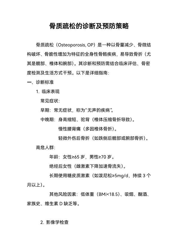 骨质疏松的诊断及预防策略