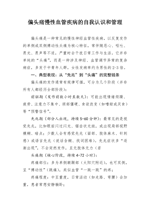 偏头痛慢性血管疾病的自我认识和管理