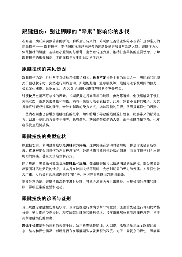 跟腱扭伤:别让脚踝的“牵累”影响你的步伐