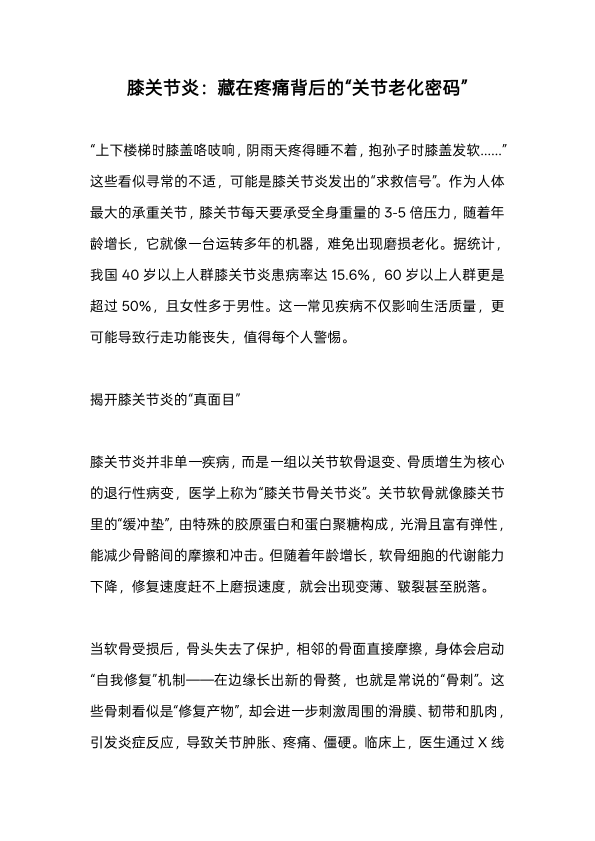 膝关节炎:藏在疼痛背后的“关节老化密码”