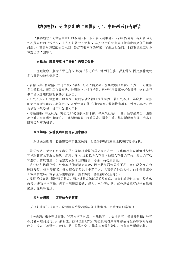 腰膝酸软的中西医解读