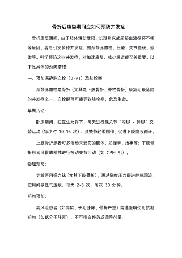 骨折后康复期如何预防并发症