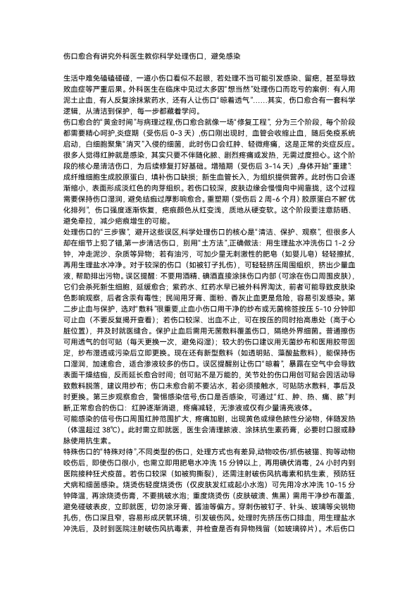 伤口愈合有讲究外科医生教你科学处理伤口,避免感染