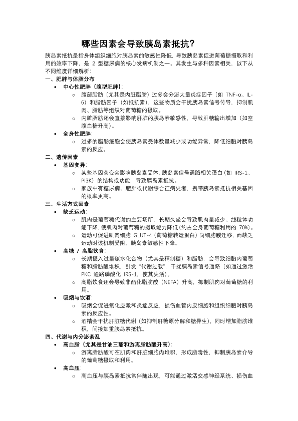 哪些因素会导致胰岛素抵抗?
