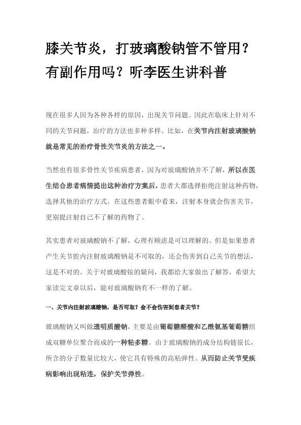 膝关节炎,打玻璃酸钠管不管用?