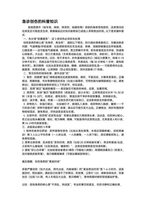 急诊创伤的科普知识