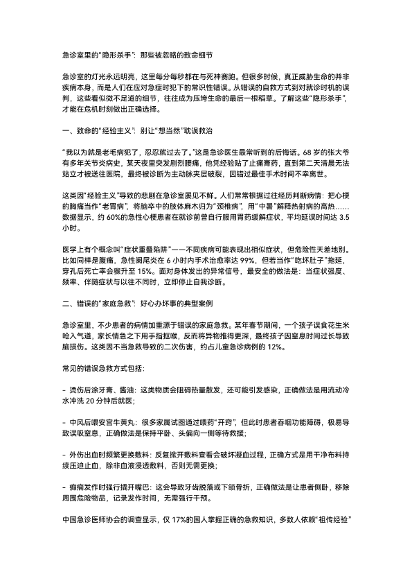 急诊室里的“隐形杀手”:那些被忽略的致命细节
