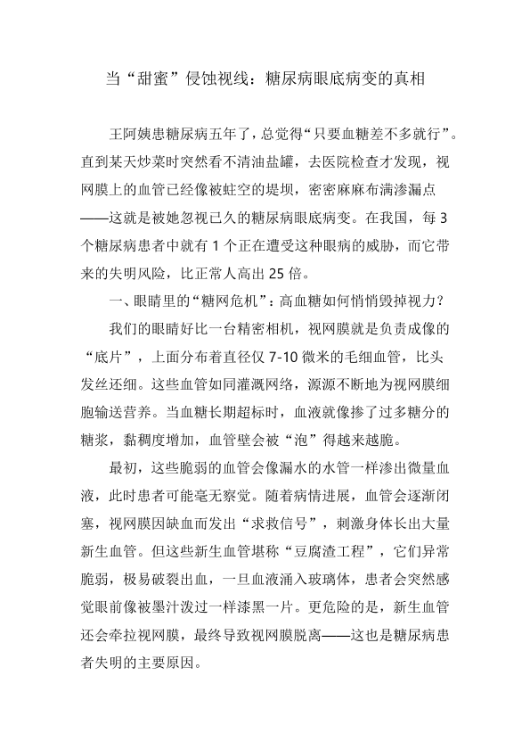 当“甜蜜”侵蚀视线:糖尿病眼底病变的真相
