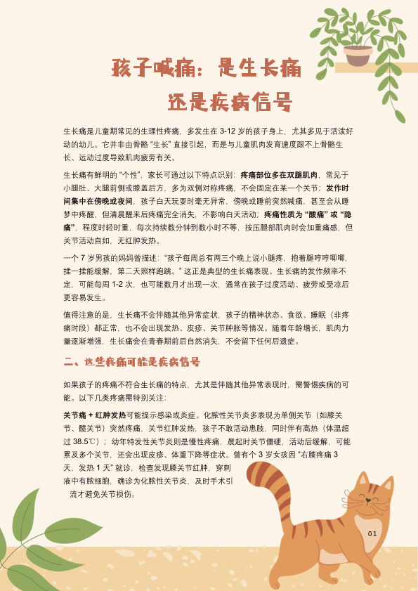 孩子喊痛:别误读生长痛与疾病信号