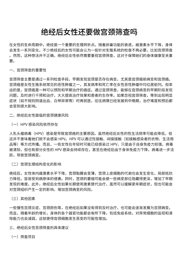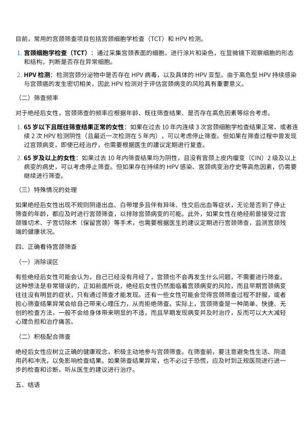 绝经后女性还要做宫颈筛查吗