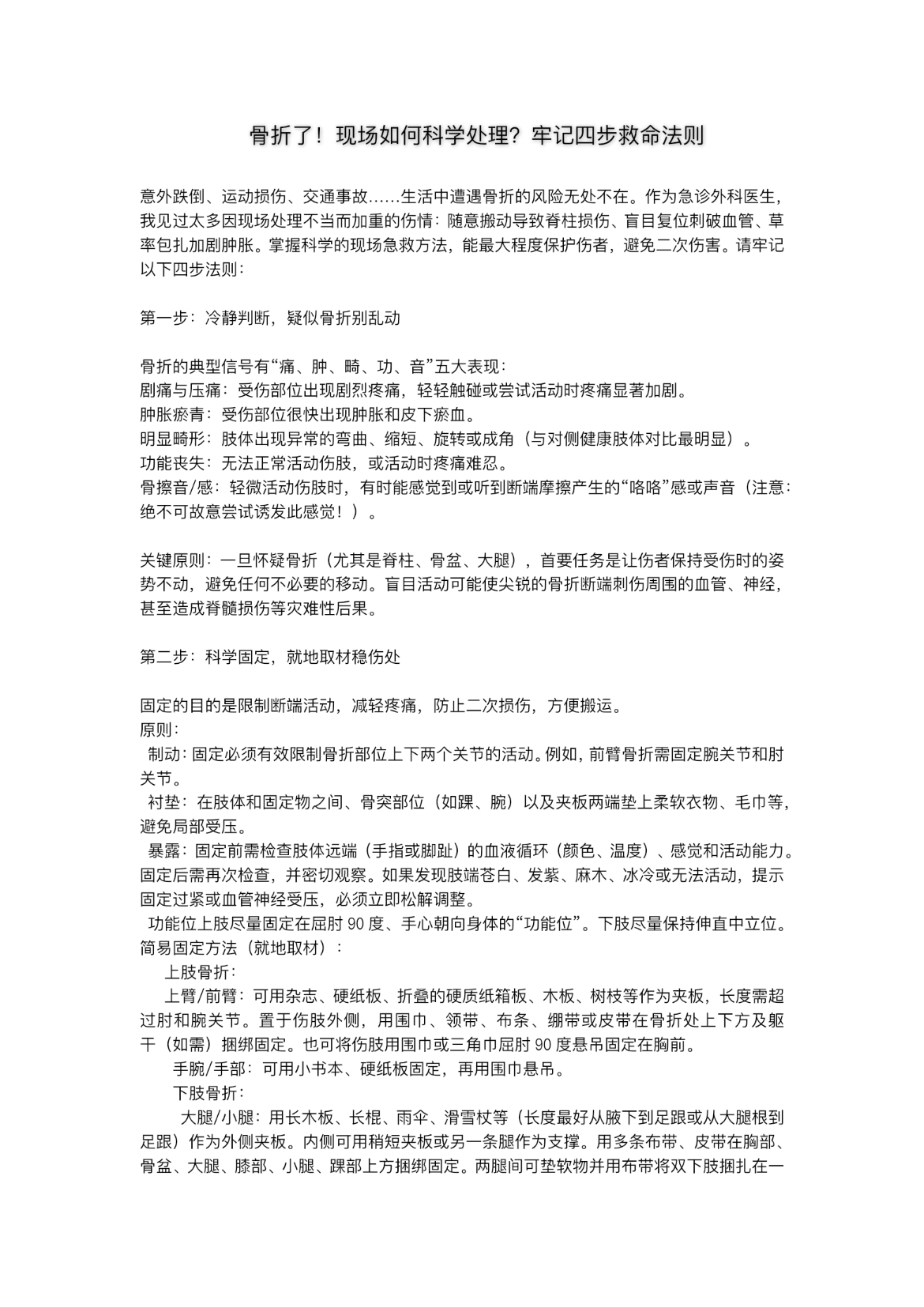 骨折了!现场如何科学处理?牢记四步救命法则