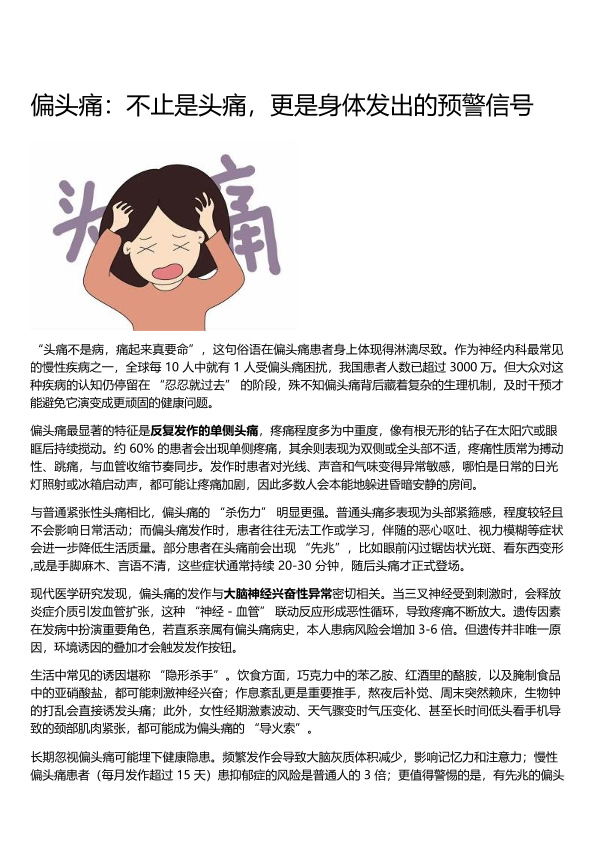 偏头痛:不止是头痛,更是身体发出的预警信号