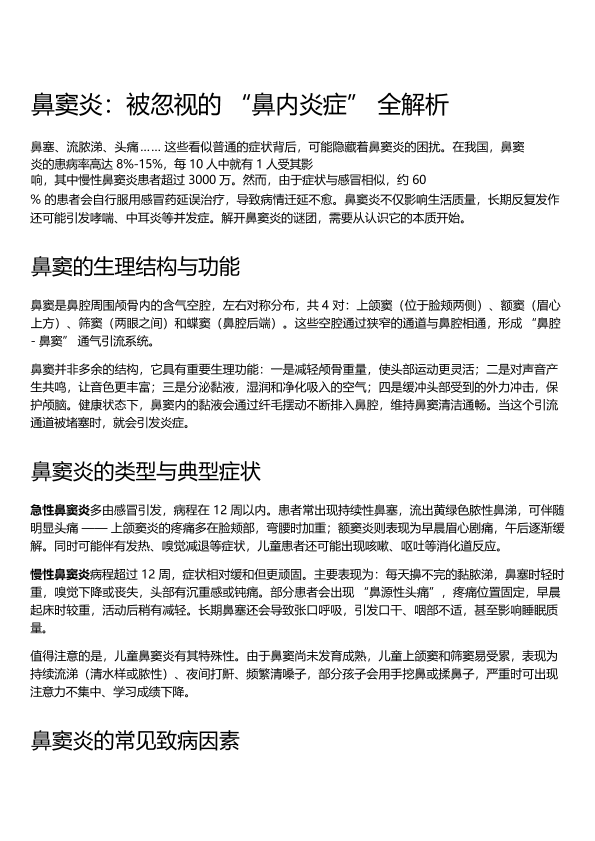鼻窦炎:被忽视的“鼻内炎症”全解析