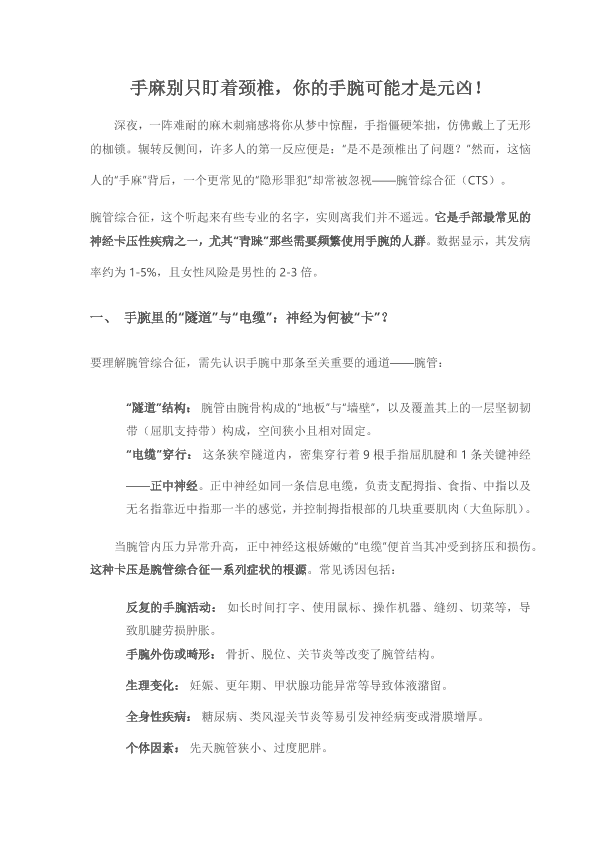 手麻别只盯着颈椎,你的手腕可能才是元凶