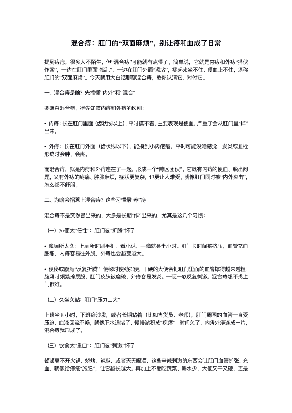 混合痔:肛⻔的“双⾯麻烦” ,别让疼和⾎成了⽇常