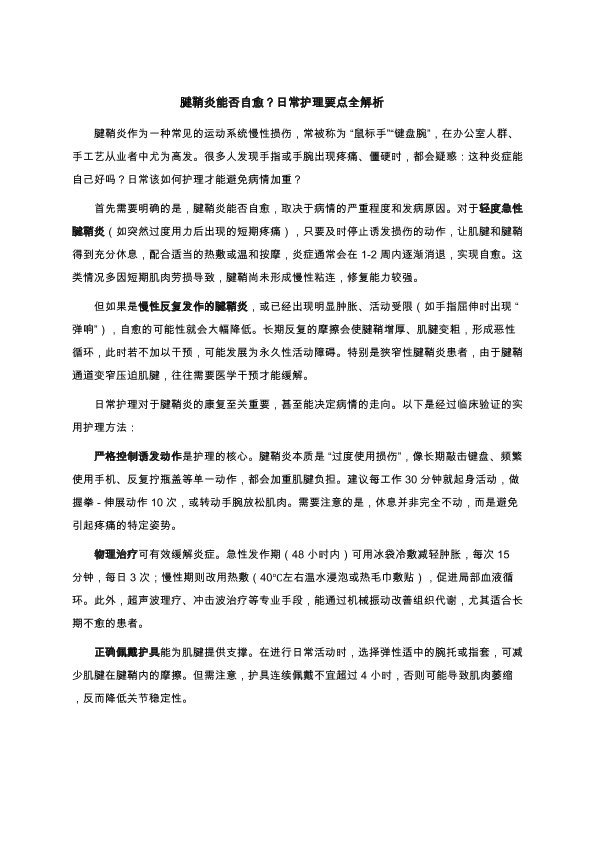 腱鞘炎能否自愈?日常护理要点解析