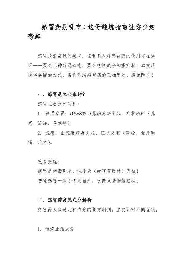 感冒药别乱吃!这份避坑指南让你少走弯路