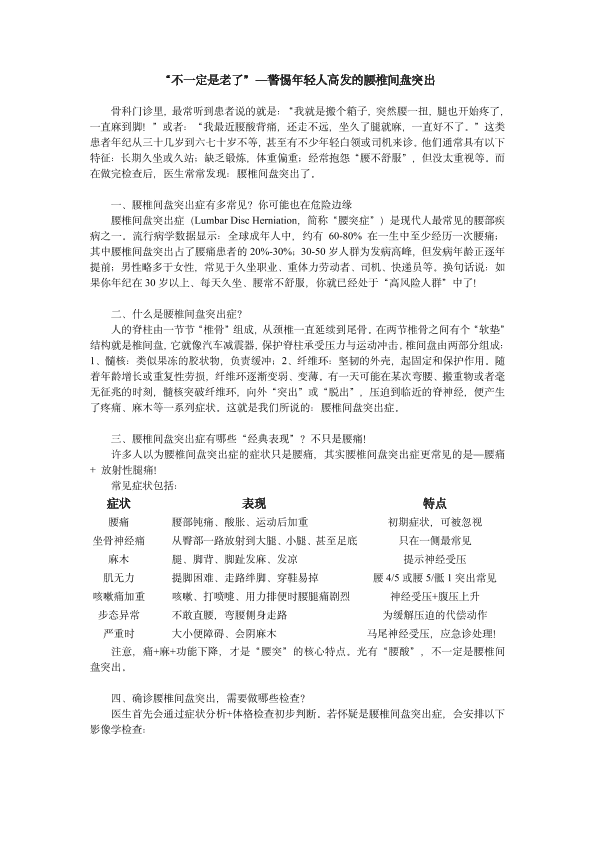 “不一定是老了”—警惕年轻人高发的腰椎间盘突出