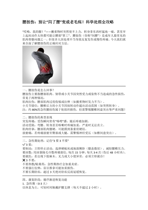腰扭伤:别让“闪了腰”变成老毛病,科学处理全攻略