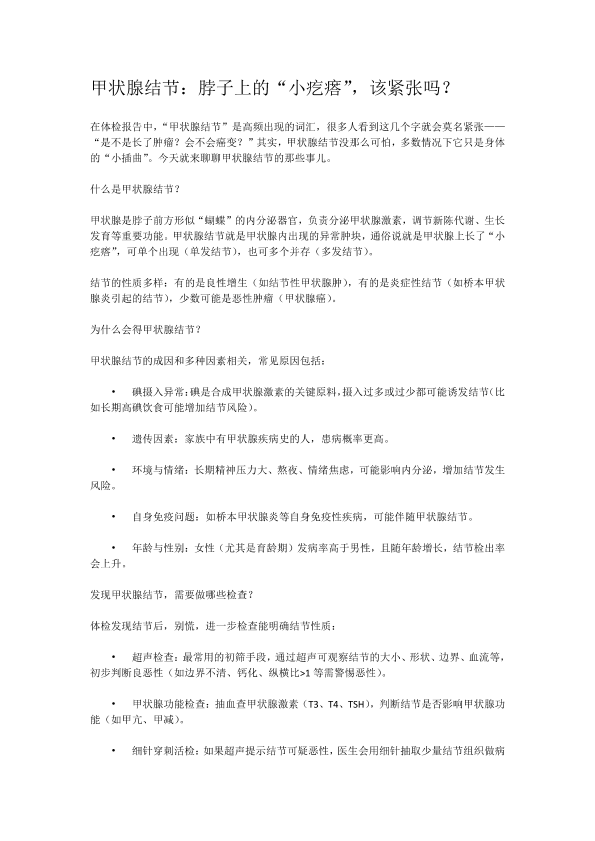 甲状腺结节脖子上的小疙瘩该紧张吗