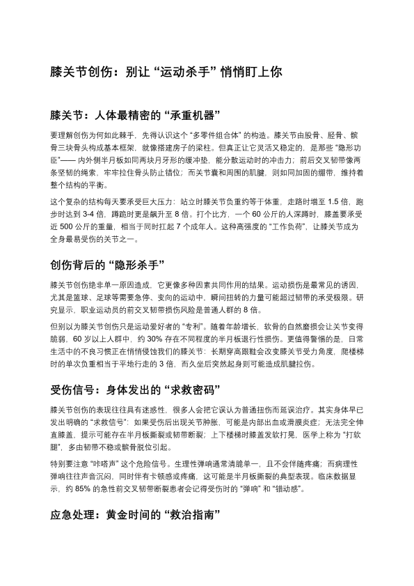 膝关节创伤:别让“运动杀手”悄悄盯上你