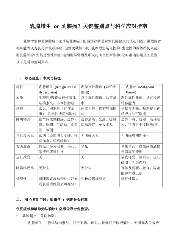 乳腺增生or乳腺癌?关键鉴别点与科学应对指南