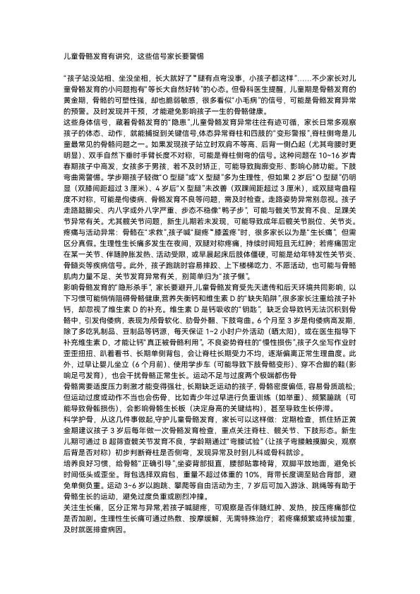 儿童骨骼发育有讲究,这些信号家长要警惕