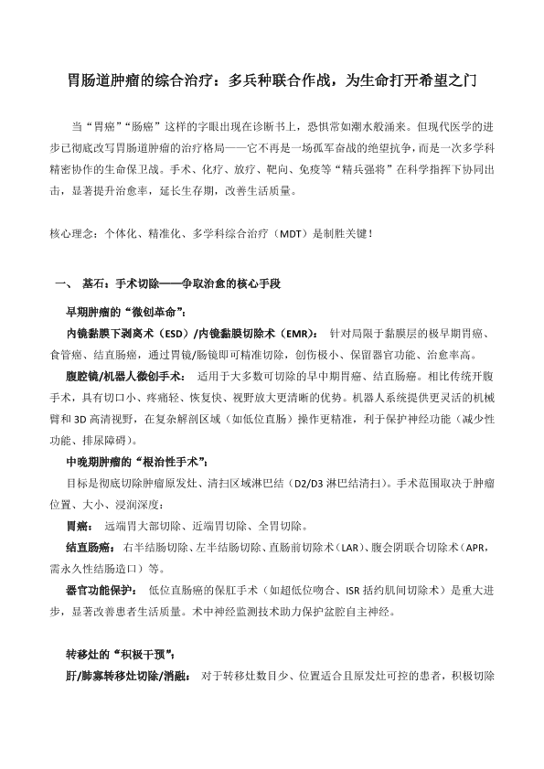 胃肠道肿瘤的综合治疗:多兵种联合作战为生命打开希望之门