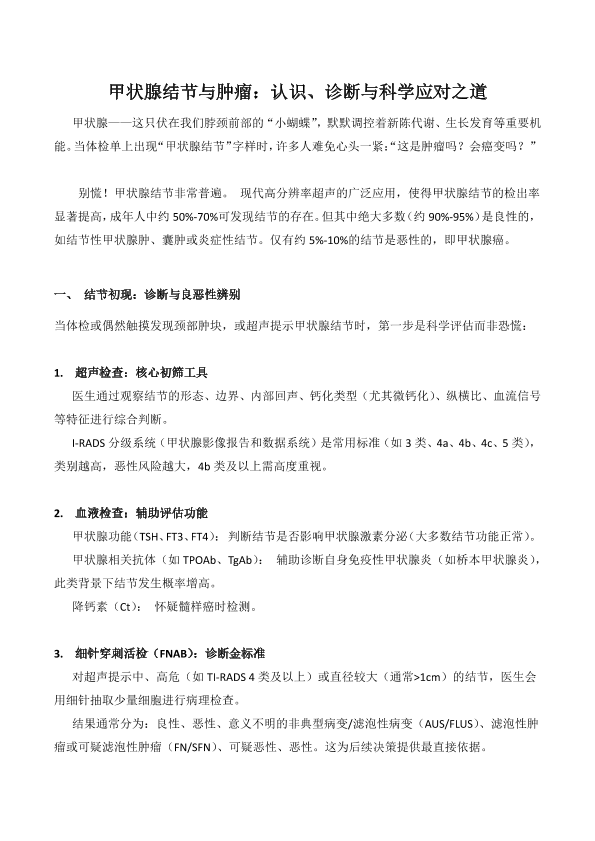 甲状腺结节与肿瘤:认知、诊断与科学应对之道