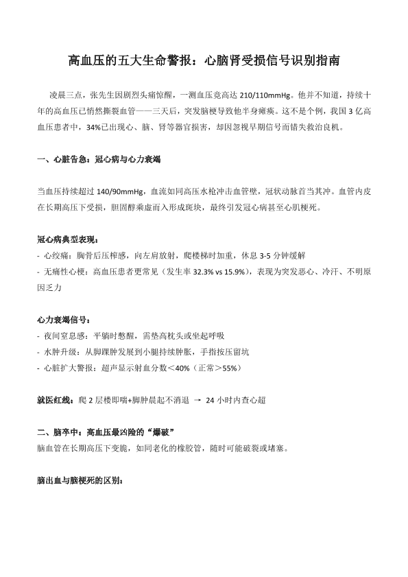 高血压的五大生命警报:心脑肾受损信号识别指南