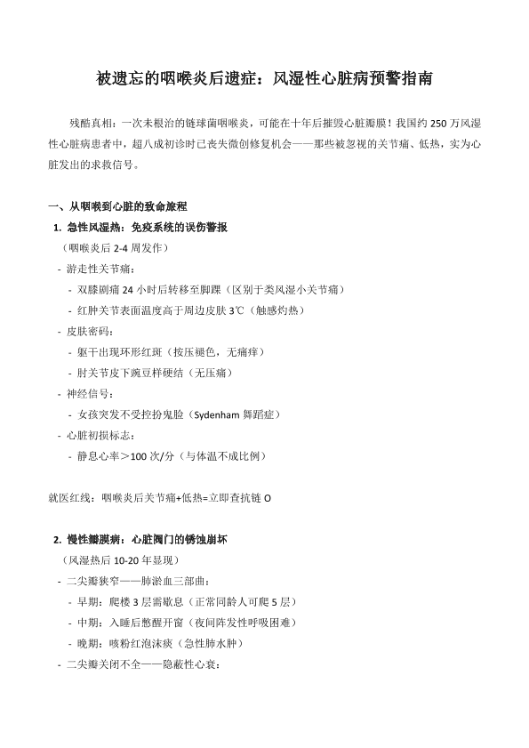 被遗忘的咽喉炎后遗症:风湿性心脏病预警指南