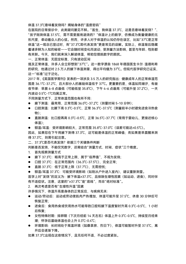 体温37.3℃意味着发烧吗?揭秘身体的“温度密码”