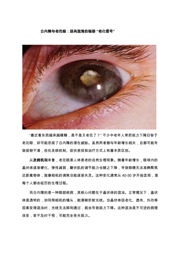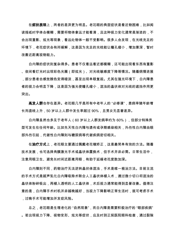 白内障与老花眼:别再混淆的眼部"老化信号”
