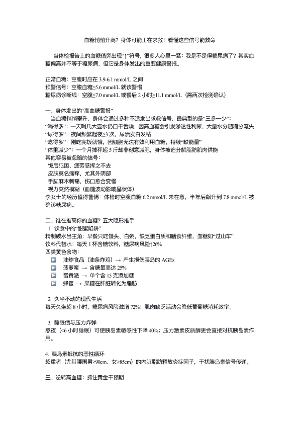 血糖悄悄升高?身体可能正在求救