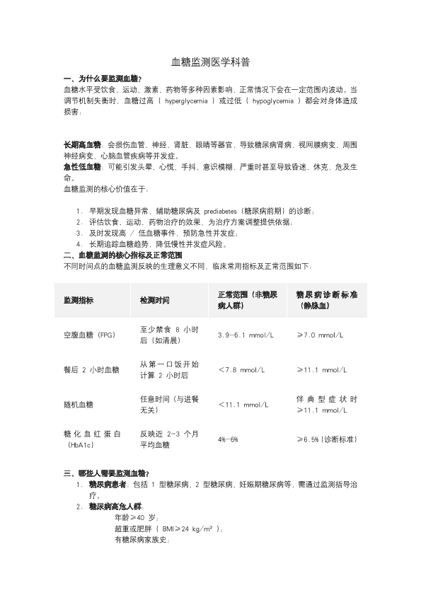 血糖监测医学科普
