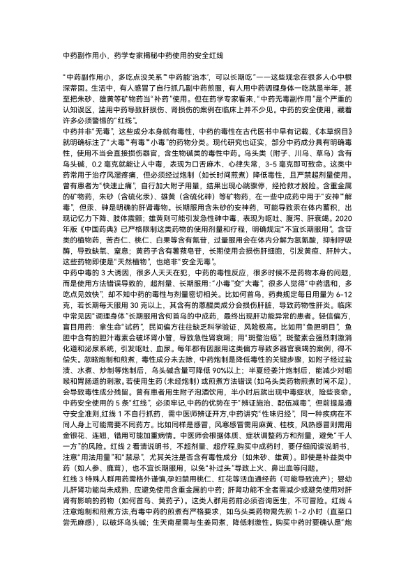 中药副作用小,药学专家揭秘中药使用的安全红线