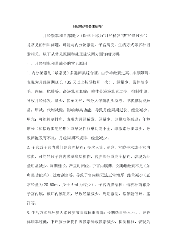 月经减少需要注意吗?