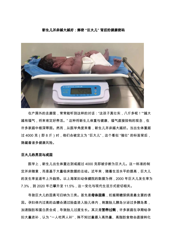 新生儿并非越大越好