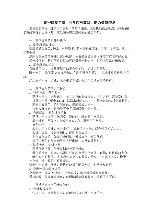 夏季康复指南:科学应对高温,助力健康恢复