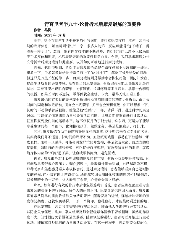 行百里者半九十-论骨折术后康复锻炼的重要性