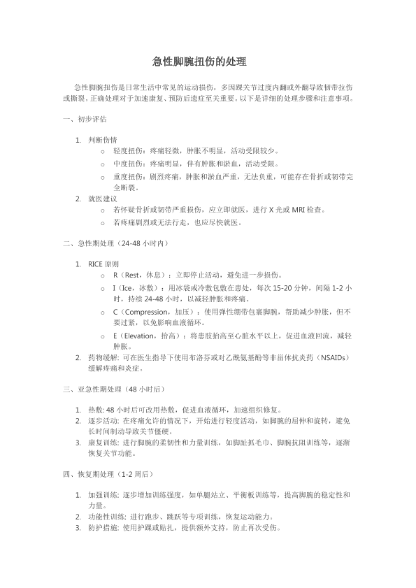 急性脚腕扭伤的处理